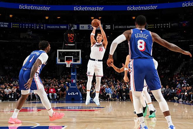 本场比赛中,快船的替补后场大将博格丹-博格达诺维奇(Bogdan Bogdanovic)的表现又一次出现了明显的下滑。博格达诺维奇全场出场18分54秒,投篮6中2,三分线外4中2,罚球2中1,得到了7分3篮板3助攻的数据,还有1次失误和1次犯规,正负值也是低到了全场次低的-23。博格达诺维奇在进攻端确实是起到了一定的效果,具备一定的投射能力和一定的支配球能力。然而问题就在于,他在防守端的表现实在是糟糕透顶,可以说是没有任何的作用,对手也可以轻轻松松打爆他的防线。也是因为防守端的表现确实是太差了一些,博格达诺维奇在场上时球队的局面也是一塌糊涂的水平,快船方面也是没有办法在这种情况下给他提供更多的出场时间和表现机会了。